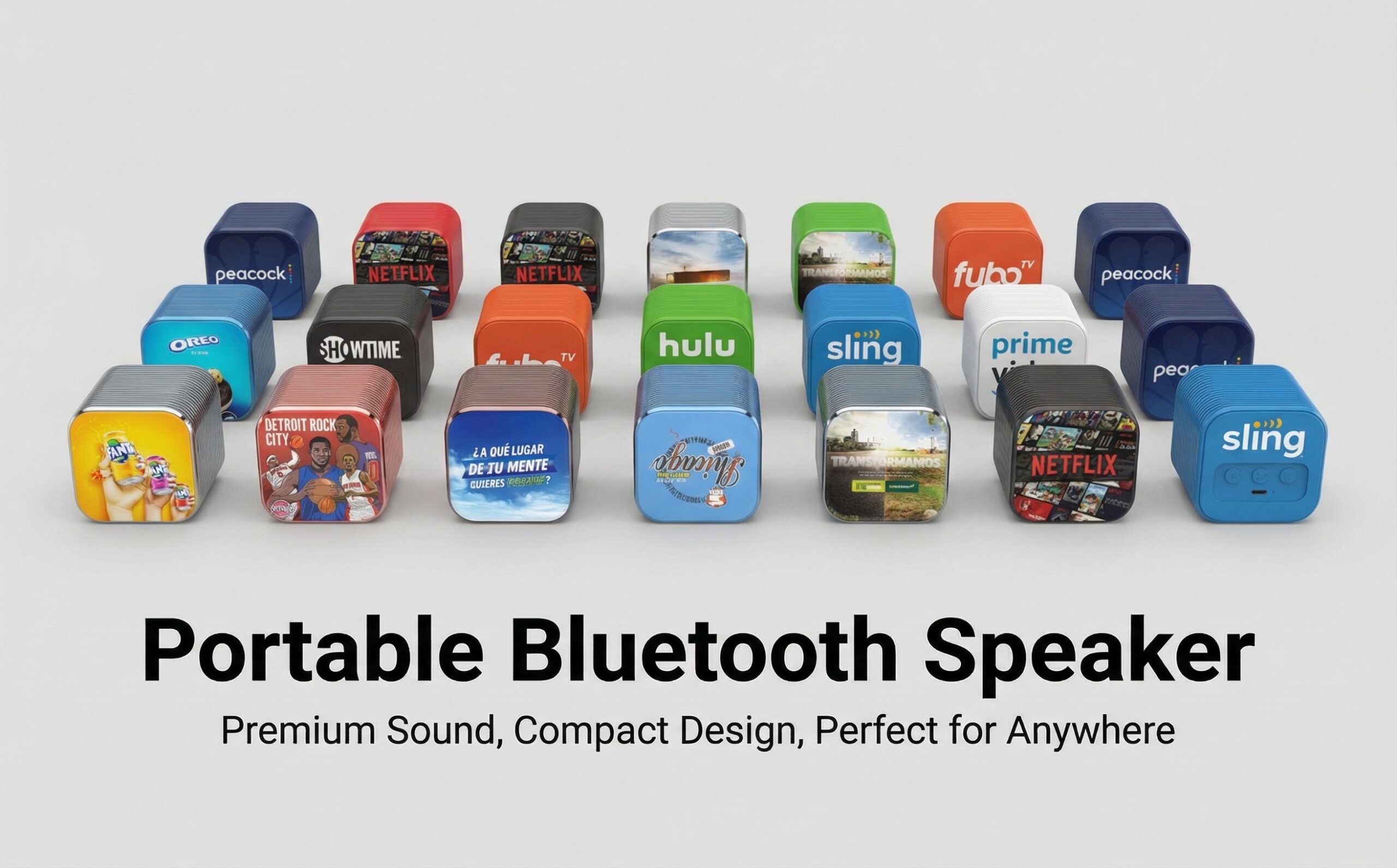 This is an exclusive private-mold portable Bluetooth speaker, tailored for enterprises, schools, exhibitions, and brand owners. It features a compact, ultra-portable design with a built-in carrying strap, perfect for on-the-go use. Equipped with Bluetooth 5.3, it delivers stable, fast connections and premium sound quality. Its standout advantage is full customization: support full-color all-over printing, with custom color options available even for small-batch orders. It is the ideal choice for annual meeting gifts, employee benefits, client souvenirs, and exhibition giveaways, combining high cost-performance with strong brand display effect.