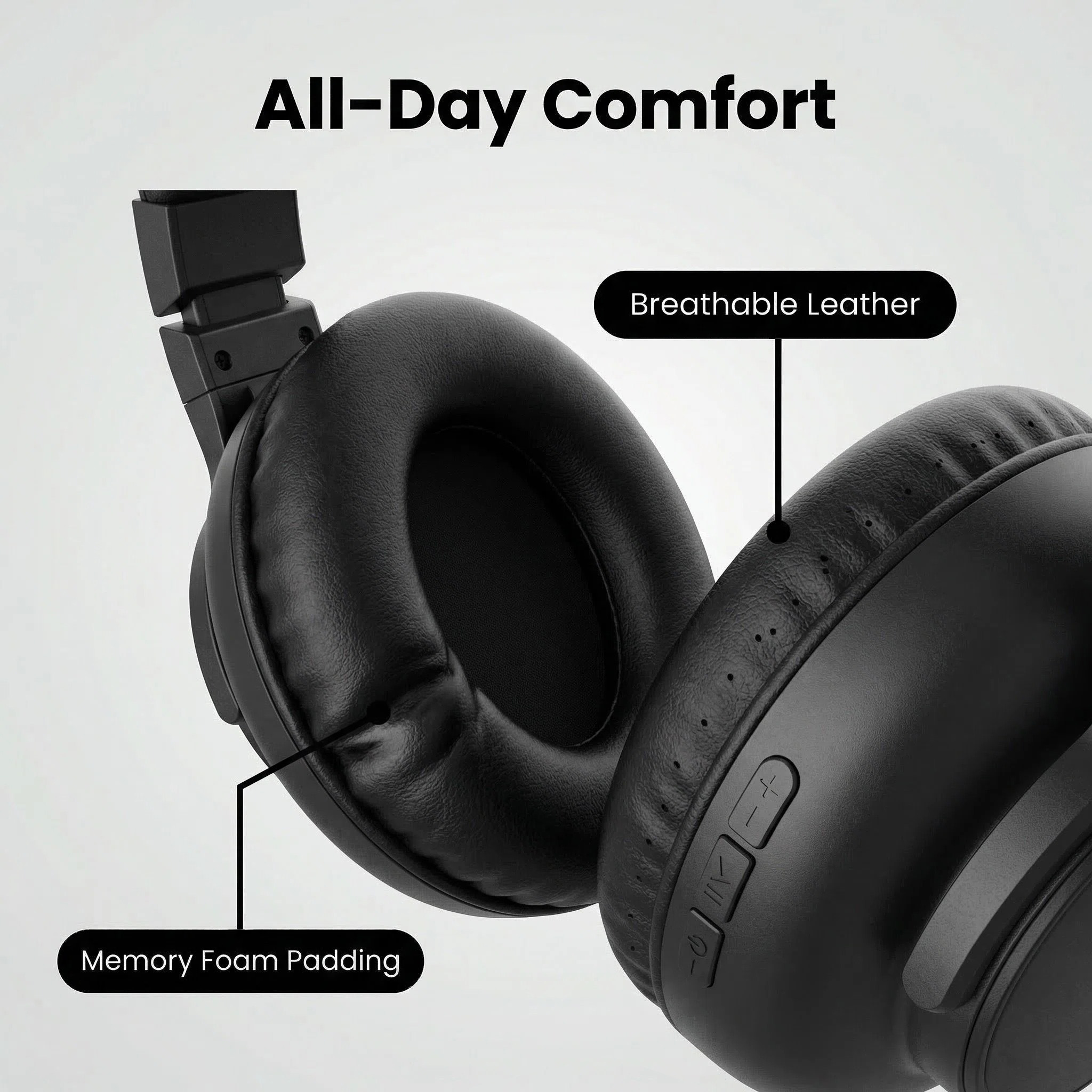 Ultra-soft memory foam earcups and adjustable padded headband distribute pressure evenly, reducing ear fatigue for hours of comfortable wear, ideal for long commutes, work, and travel.
