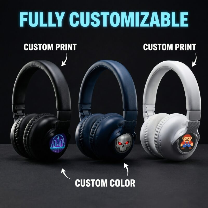 Exclusive built-in LED module on earcups, supporting full customization of brand logos, text, or patterns. The logo lights up during use, creating a cool, futuristic visual effect that maximizes brand exposure.